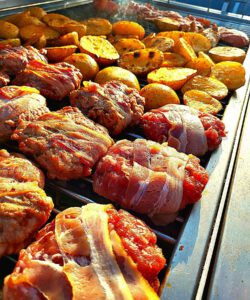 Willkommen bei unserem Grillbuffet der Extraklasse – Luxury! Ein Zusammenspiel aus deutsch-mediterranen Salaten, hausgemachten Dips und diversen Grillsaucen. Wir bieten eine exklusive Auswahl an Grillfleisch, darunter zarte Rinderhüftsteaks, saftige Nackensteaks, würziges Bauchfleisch und weitere Köstlichkeiten.